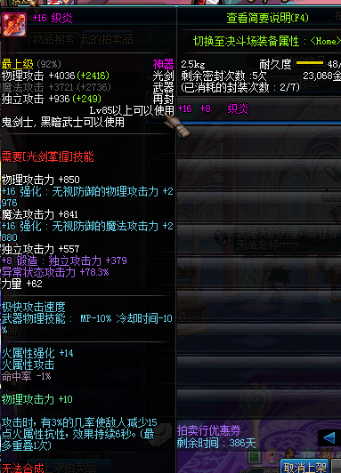 +16织炎 鬼剑士黑暗武士 +16光剑 加超强攻击,看图说话