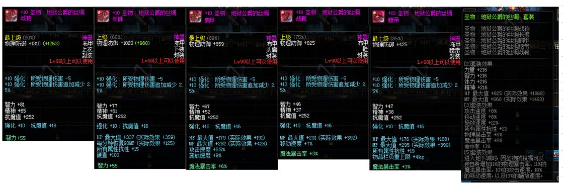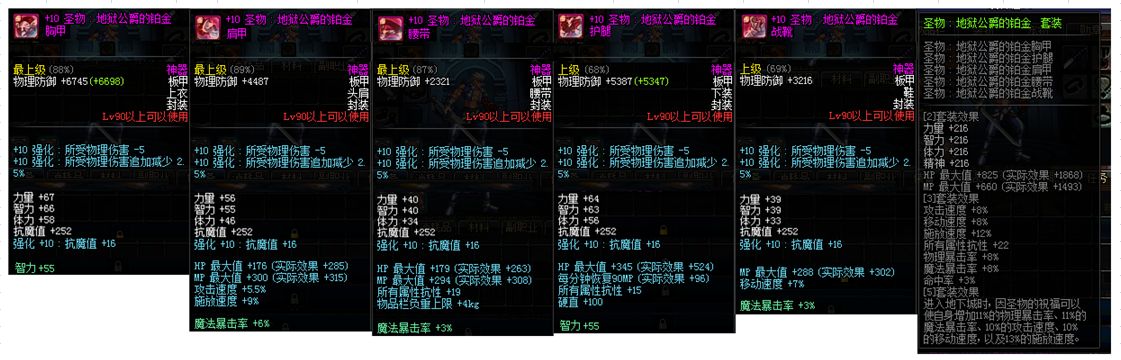 全套强化+10【皮甲套、布甲套、板甲套】三选一 其他属性看下面截图皮甲板甲上衣附魔55力或智,皮甲板甲下装附魔55力或智,皮甲板甲护肩附魔9%物理暴击或者6%魔法爆击,皮甲板甲腰带附魔5%物理或魔法爆击,皮甲板甲鞋附魔5%物理或魔法爆击)布甲上衣下装附魔55智力肩膀附魔6%魔法暴击鞋子腰带附魔5%魔法暴击