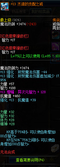 +13 杰诺的支配之戒 粉字 异次元智力+128 力量+57 智力+188 抗魔附魔32智力宝珠 双17智力徽章