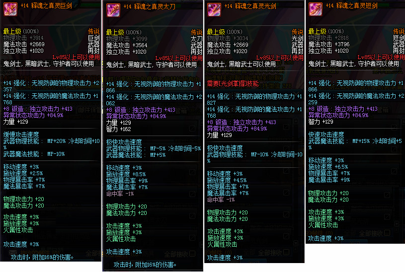强化+14释魂之真灵武器 鬼剑士 四选一 附魔使徒宝珠
