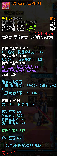 鬼剑士 +15 释魂之真灵巨剑 锻造+8,+45物攻,跨8通