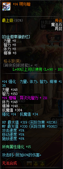 增幅+14 明与暗 红字异次元智力+211 便宜甩了 要的老铁抓紧时间
