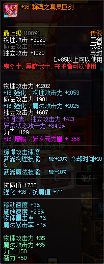 增幅+16释魂之真灵巨剑【附魔卡恩宝珠】异次元力量+358