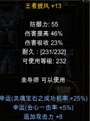 王者披风+13 幸运追攻+8 圣导师专用