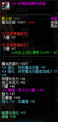 增幅+14战神阿瑞斯戒指 增幅红字异次元165点力量