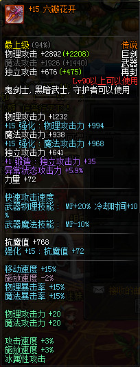 鬼剑士+15六瓣花开 金色光芒90传说巨剑
