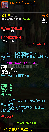 +16杰诺的支配之戒 增幅+16红字异次元358智力 传说戒指 已经非常高的智力了