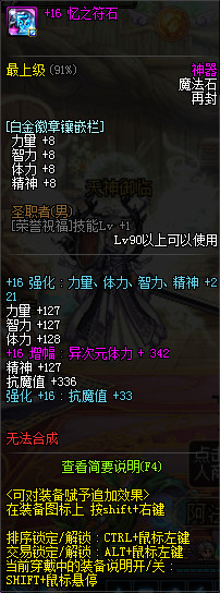 增幅+16忆之符石 红字超高体力342 带荣誉祝福徽章