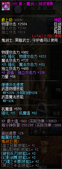 增幅+15真·魔剑-阿波菲斯 鬼剑士武器 搭配释魂六瓣花开死神之光