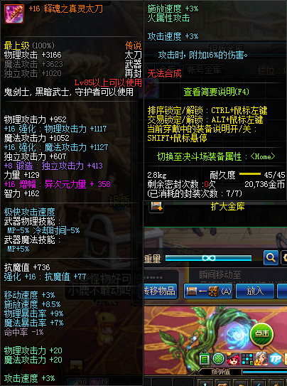 增幅+16释魂之真灵太刀 鬼剑士太刀 超高力量 跨七锻八附魔宝珠 增幅+16红字异次元358力量,秒15/16/17释魂光剑短剑太刀巨剑六瓣死神魔剑,神毫必备