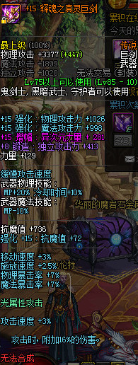 增幅+15释魂之真灵巨剑 鬼剑士 增幅+15红字异次元281力量 PK爆爽