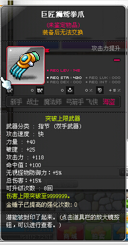 巨匠狮鹫拳爪 比弗纳巨狼之爪稍微差点,冲锋队长和新职业银月的极品武器!(备注:交易员东西不在背包就在雇佣商店,麻烦取出交易,谢谢!)